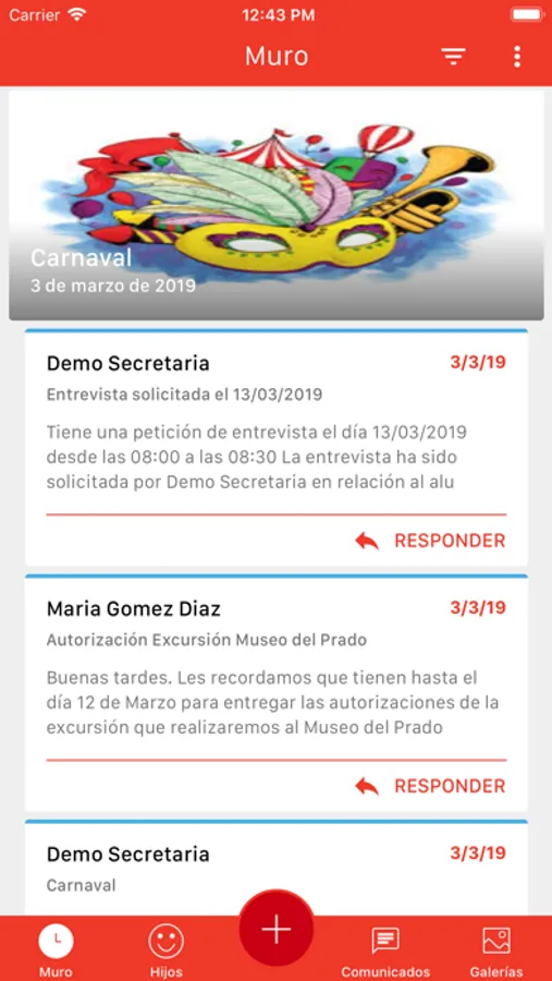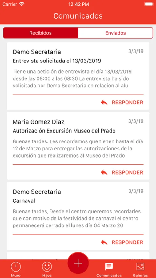 Aplicación para la comunicación con las familias de alumnos de los colegios de Fomento de Centros de Enseñanza