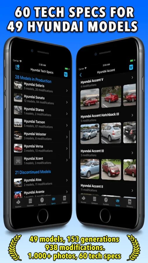 TECH SPECS FOR 21 DISCONTINUED HYUNDAI MODELS: