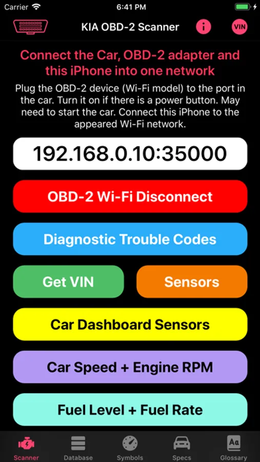 ◆ The current version of the app only supports OBD2 Wi-Fi adapters based on the ELM327 chip.