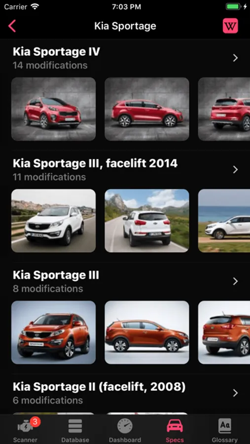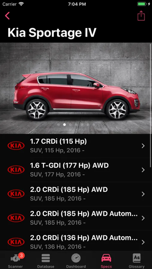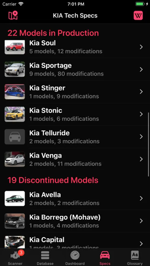 TECH SPECS FOR 19 DISCONTINUED KIA MODELS: