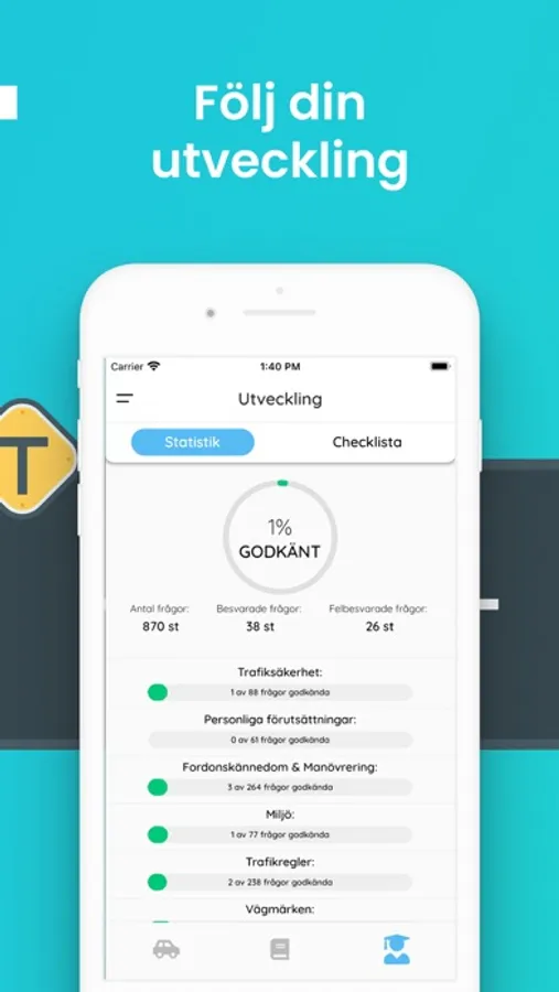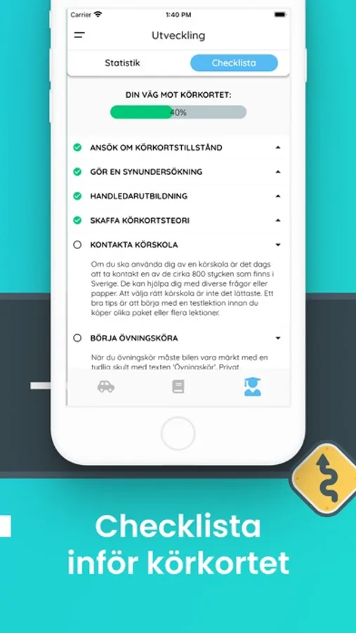 Appen innehåller du behöver för att klara teoriprovet och ta ditt körkort!