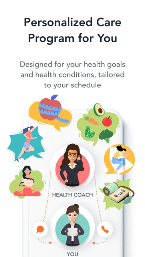 The app matches you with a dedicated health coach remotely. Your health coach designs a personalized care plan for your health goals. Through regular sessions with your coach, you are supported every step of the way to make positive changes towards a better you.