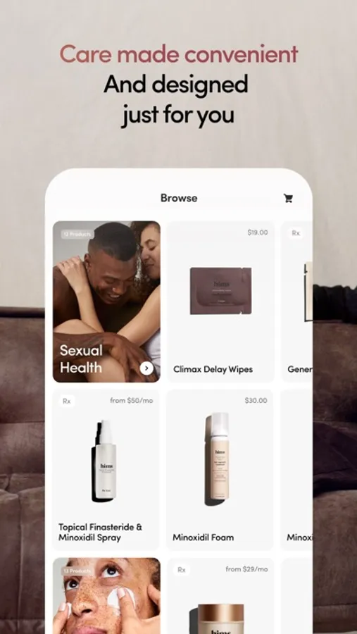 Get everything you need to take better care - all in one place. With Hims, best-in-class treatments for hair, skin, sex, and mental health are just the beginning. Now, you can experience specially-curated health and wellness support designed to complement prescription treatment for everything from acne to hair loss, erectile dysfunction to anxiety.