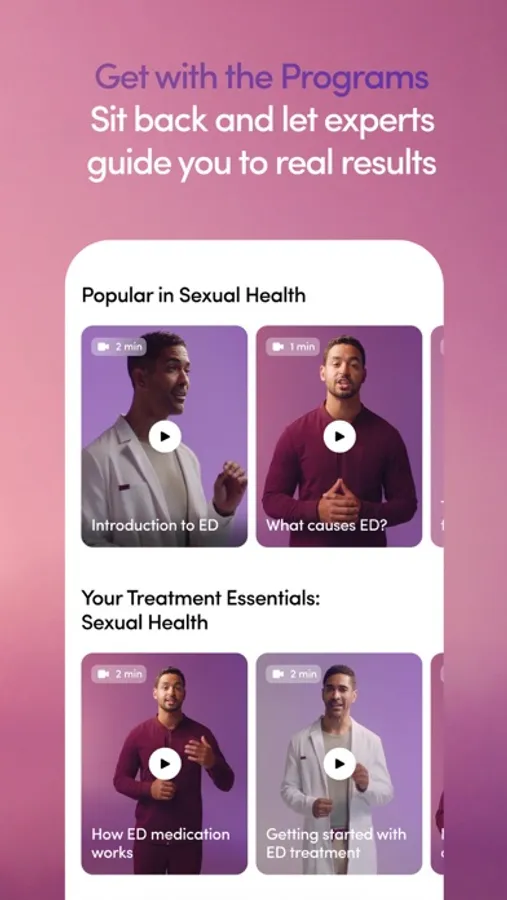 1. Programs: For members who have received a prescription through our platform, our Guided Start Programs bring you exclusive video content, designed with doctors, to guide you through the first 4 weeks of your treatment. We go into the science behind the treatment, tips & tricks for success, and tools for maximizing effectiveness. We also answer FAQs and let you know what can usually be expected in terms of timing and outcomes.