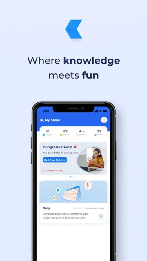 Camp K12 is a FREE mobile app specially designed to help sharpen children’s minds by testing them via daily quizzes across 5 topics - Math, Logic, Coding, Tech Trivia and English. It sets up the perfect routine which can help children boost their intelligence and be productive while using a phone. The app provides features like coin multipliers, streaks and a global leaderboard to keep them motivated.