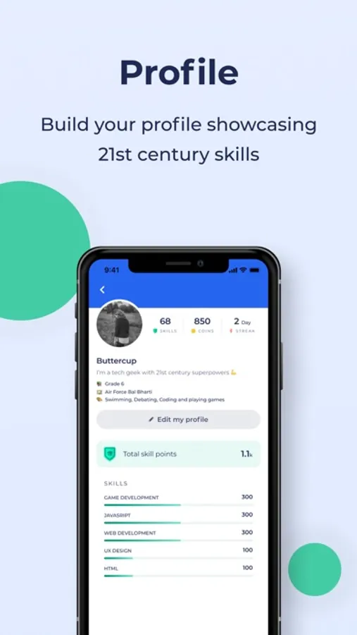 Besides quizzes and events, children can start building their global Camp K12 profile which keeps track of courses, projects, certificates and skills earned on the platform.