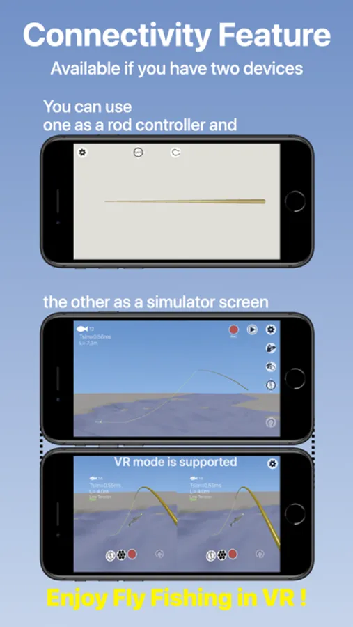 • If you have two devices, you can use the Connectivity Function that allows you to operate the fly rod with the other one while seeing one device as a simulator screen.