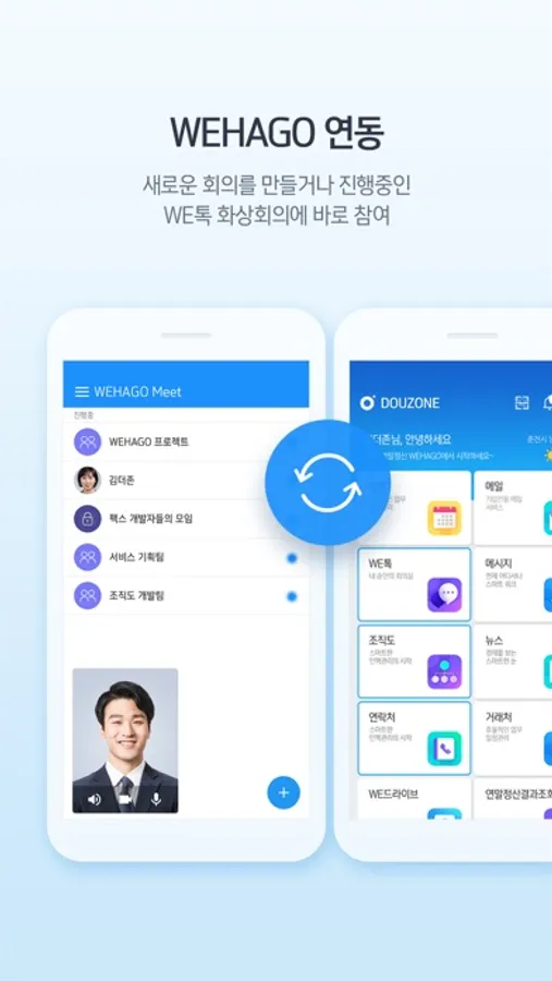 WEHAGO Meet는 온라인 화상회의 및 협업 어플리케이션 입니다. WEHAGO에 가입된 회사 직원들과