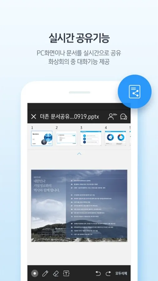 -문서공유 기능 : PC에서 공유한 문서를 함께 보면서 회의를 진행할 수 있습니다.