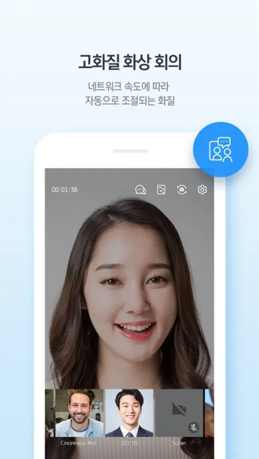 -편리한 대화기능 : 화상회의 중에 메시지 및 사진, 동영상을 주고 받을 수 있습니다.