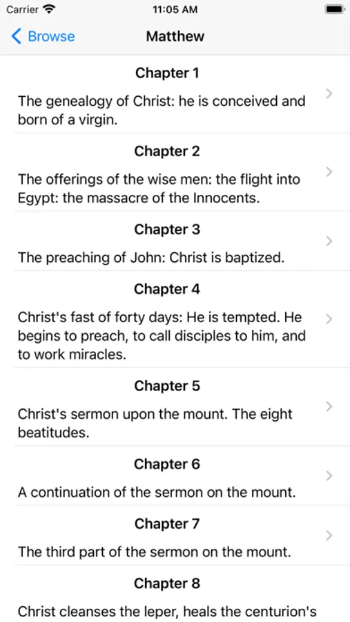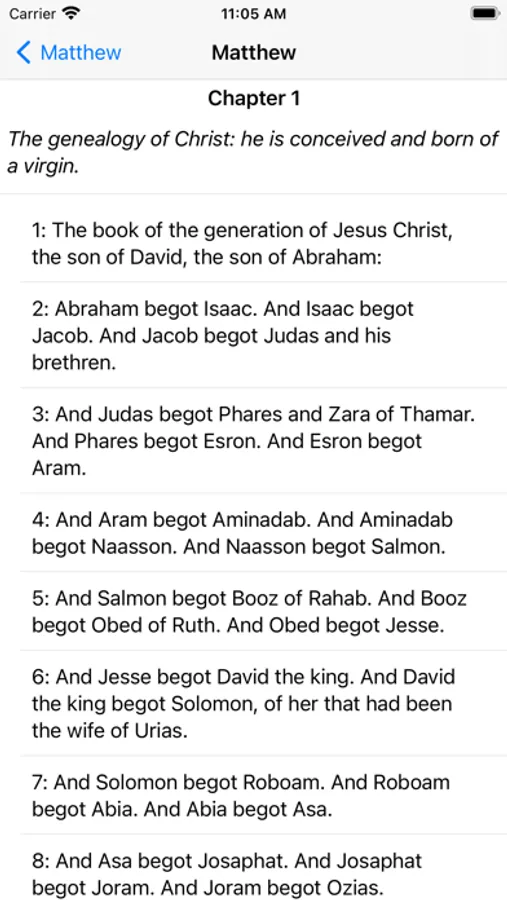 This app provides the Douay-Rheims translation of the Bible with official notes and also quick access to the Latin Vulgate for each verse.