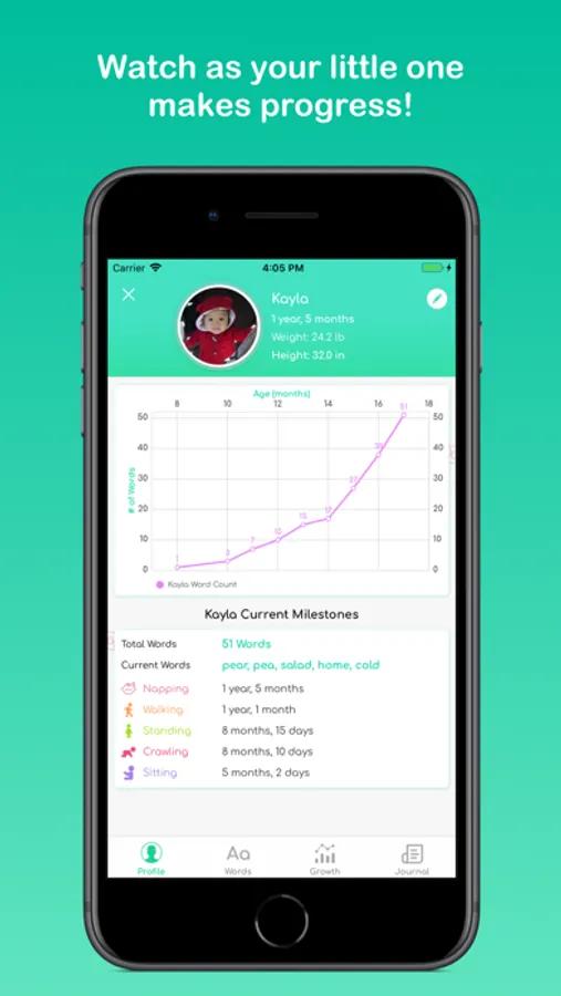 Track all your child’s milestone in the journal of the TinyLog app! Pick up TinyLog and track the progress of your newborn today!