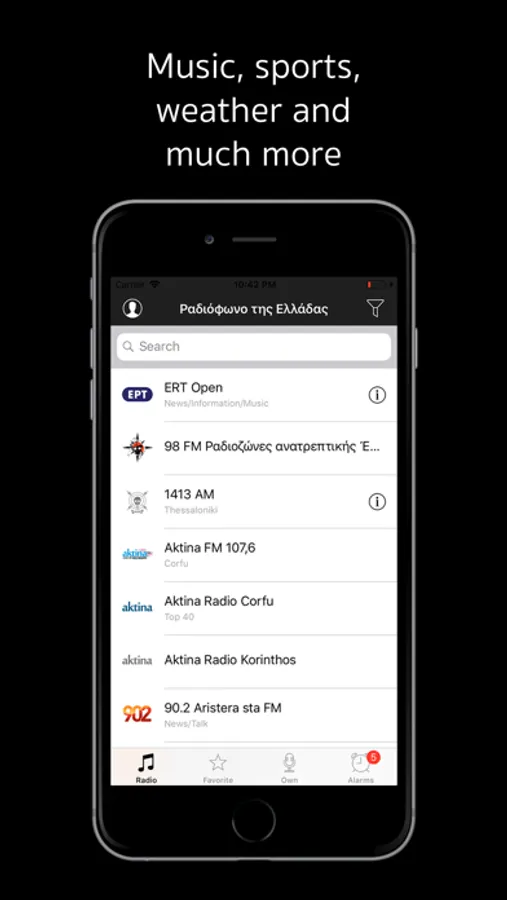 With Ραδιόφωνο της Ελλάδας, you can easily listen to live streaming of news, music, sports, talks, shows and other programs of Greece. Ραδιόφωνο της Ελλάδας offers tremendous depth and breadth of stations with genres ranging from Alternative, Electronica, Metal to Jazz and Classic across a broad set of languages including Italian, Spanish, French, German, Russian and Portuguese. At the same time, application has public radio, talks about business and analytics.