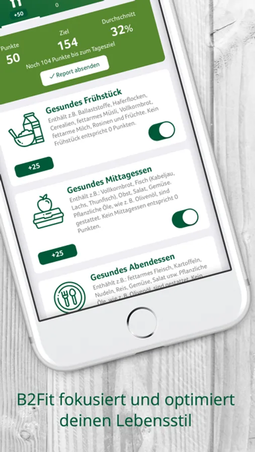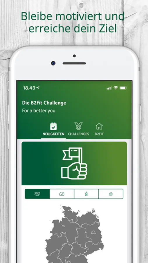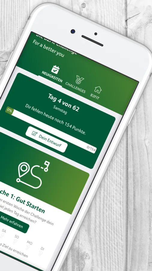 Nutze die App, um an der 6-wöchigen B2Fit Challenge teilzunehmen, täglich gesunde Punkte zu sammeln und so deinen Lebensstil nachhaltig zu verbessern. Vorab musst Du dich über unsere Website www.b2fit.de registriert haben. Mit der App hast du deine Verhaltensweisen, deinen persönlichen Fortschritt, den Status deines Teams und die Entwicklung anderer Teilnehmer und Teams stets im Blick.