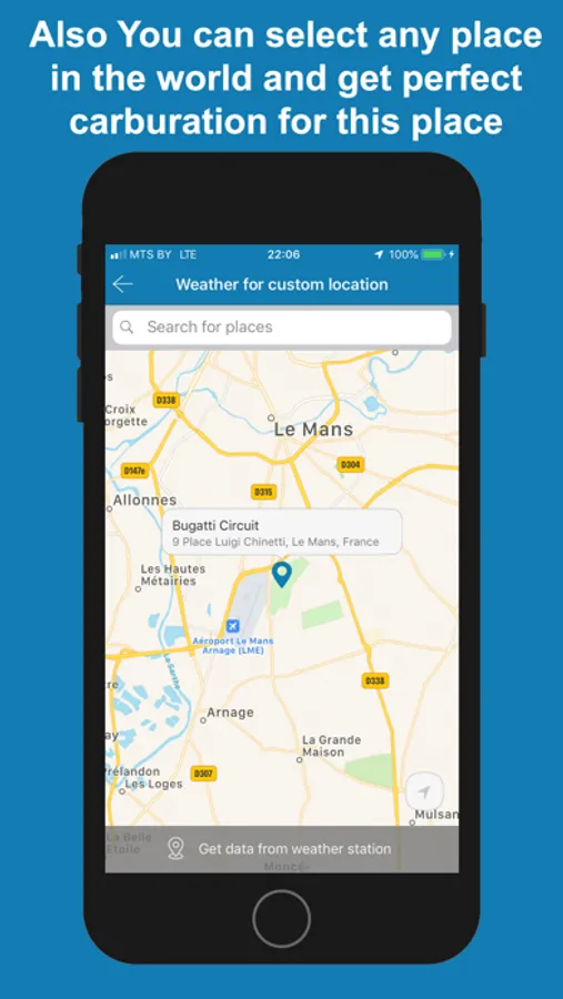 • If you don't want to share your location, you can manually select any place in the world, the carburetor setups will be adapted for this place