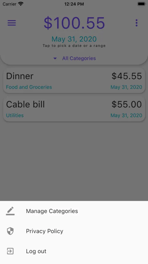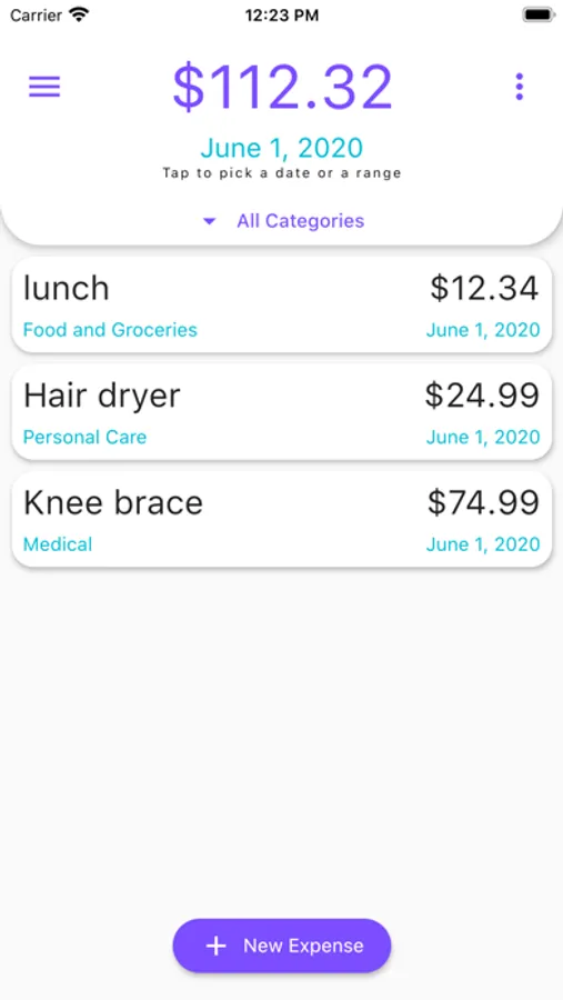 You can view your spending habits daily, weekly, monthly or any date range you like. Several common categories are preloaded in the app, but you can also create custom categories as well.