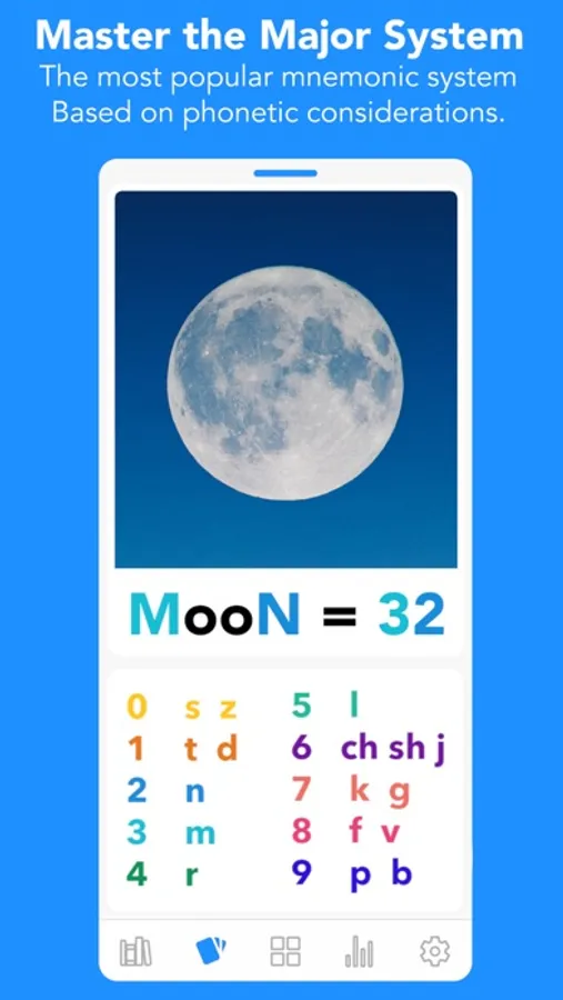 In our app, everything has been designed to facilitate your memorization! Each number is associated with an image to solicit your visual memory. Pictures have been pre-selected following the Major system, but you can of course personalize each flashcard by adding your own images for even better memorization results!