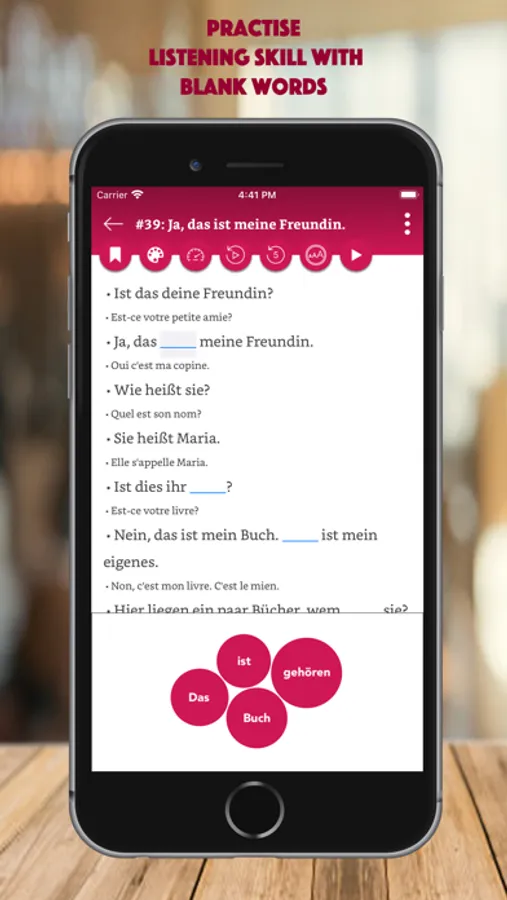 Learn to speak German through hundred of real-life conversation dialog is the most effective way to learn German. Emphasize on listening, the app help you to improve your listening skill, pronunciation, know how to ask and answer in daily talking.