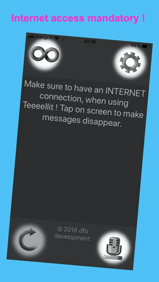 Teeeellit needs an Internet connection as it uses Siri technology to transcript. Be tolerant with Teeeellit as it makes its best to help you. If you feel lost, just tap the screen to erase all and get started again. No data is stored, neither used by Teeeellit.