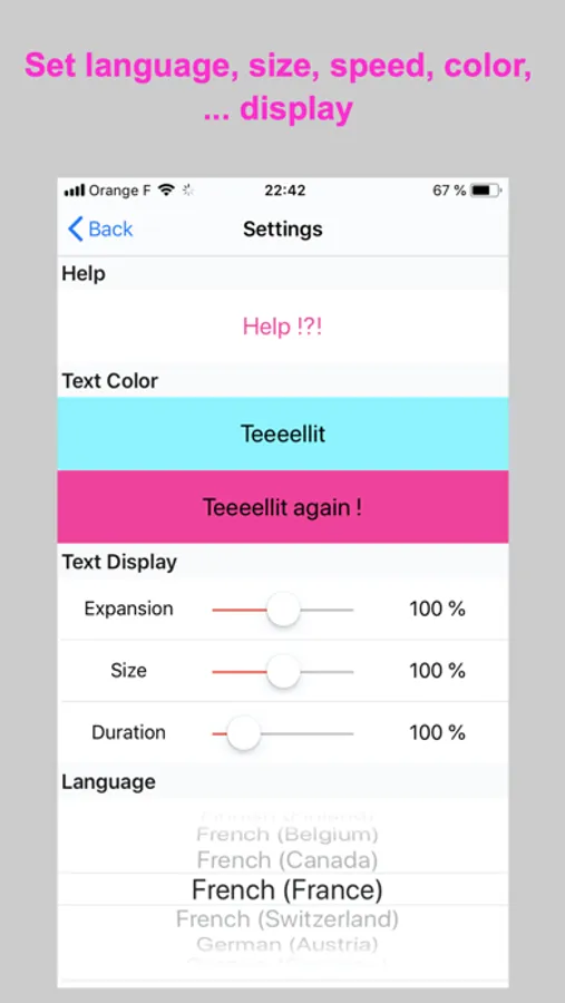 Teeeellit ergonomics has been designed to help you catch words and sentences the best way for you according to your preferences of characters' size, duration and display so that you focus more on your exchanges and less on reading.