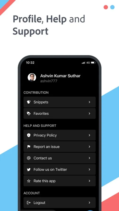 All snippets available on this application are publicly accessible. The author of this application is not responsible or liable for loss or damage of any kind during the usage of provided code.