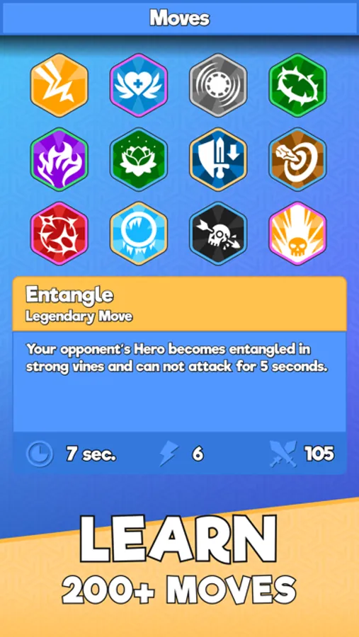 With over 100 Heroes and over 200 Moves, there is an enormous variety of options to customize your Hero battle squad. You can keep challenging yourself to build a better squad of Heroes and to discover new ones!