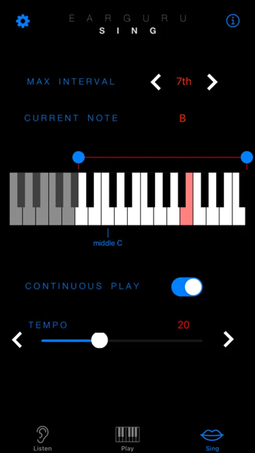 In SING mode, EarGuru asks you to sing a note, and as you're singing, EarGuru plays the note so that you can make sure you've sung it correctly and in tune.