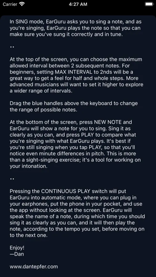This app relies on you, as a serious musician, to self-evaluate. If used regularly, it can completely transform your hearing.
