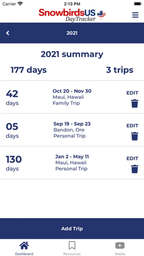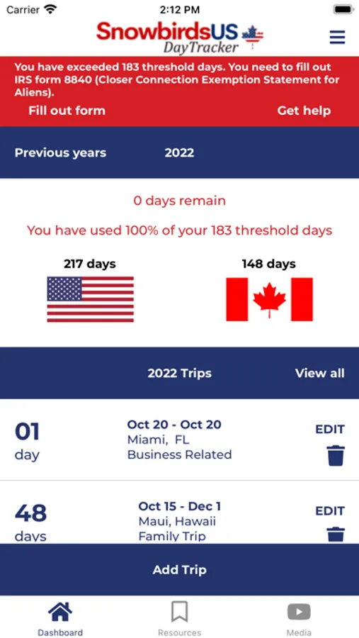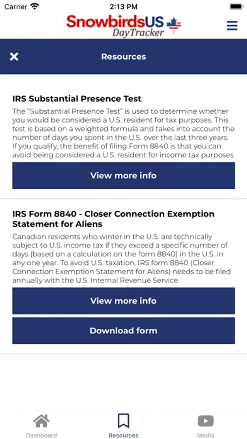 The "Snowbirds US Day Tracker" app helps you track the number of days you’re spending in the USA, which is essential to avoid being classified by the IRS as a US resident for tax purposes.