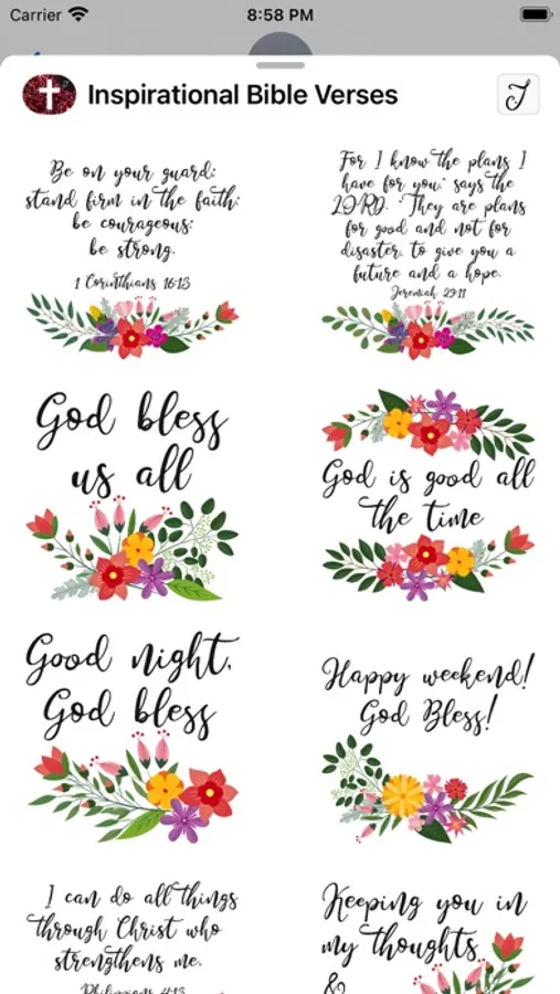 All the verses & greetings are designed with decorative flowers. This stickers pack comes with carefully selected Bible verses that are inspiring and encouraging. Send it to someone that you know needed it most or someone that you would like them to know about GOD, this will be a good way to start the conversation.
