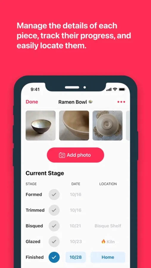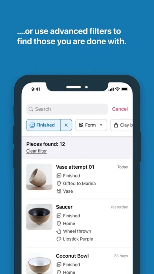A digital diary to help ceramists keep track of their pieces and document their process.