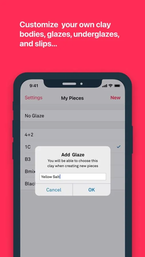 Take notes and choose from list of glazes, underglazes, slip and forms...or add your own!
