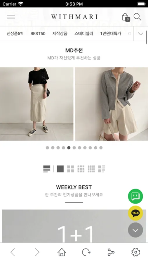 소재와 라인을 중시하는 여성의류쇼핑몰 위드마리 입니다.