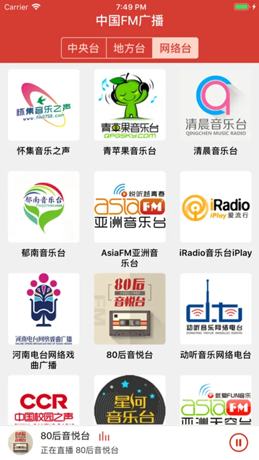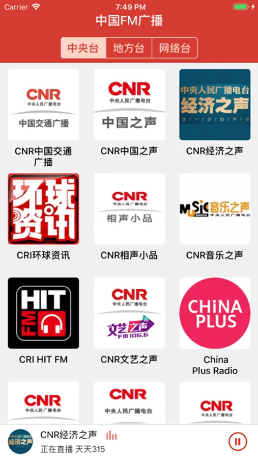 国家台:包含CNR中国之声,CNR音乐之声,CNR中国交通广播,CRI环球资讯,CNR华夏之声在内的数十个国家级电台。