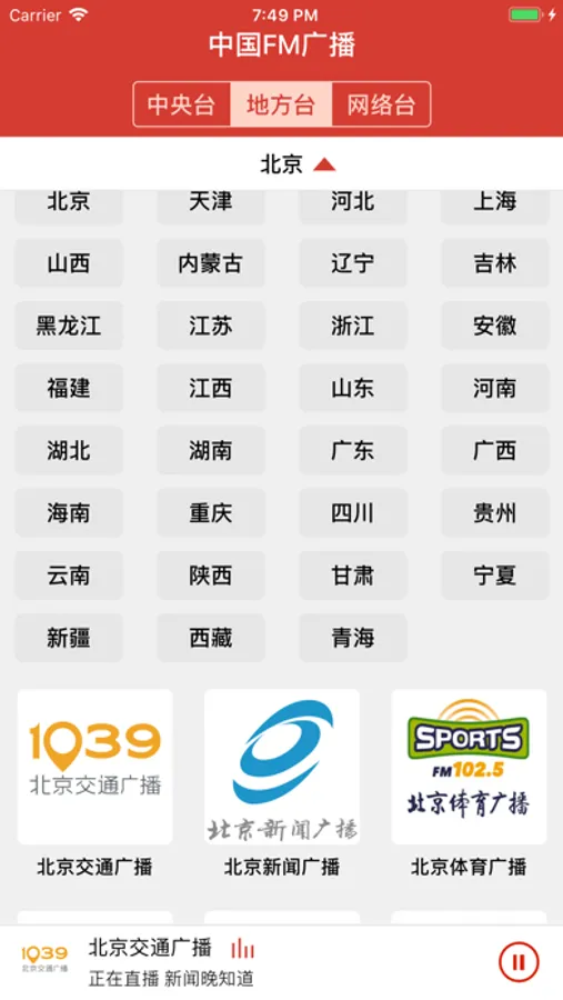 省市台:从北京上海等大城市,到广大的乡镇农村,34个省,自治区,直辖市的上百家地方电台应有尽有。
