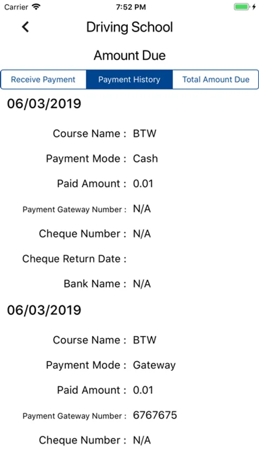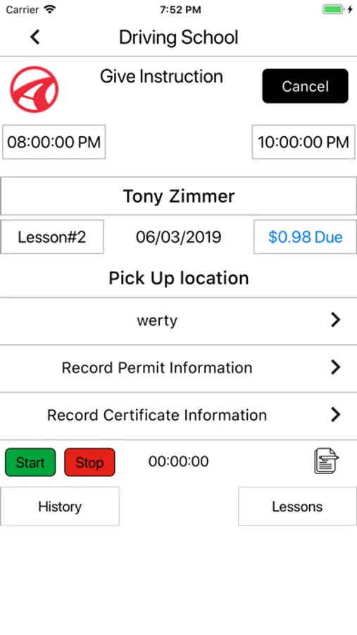 The app allows instructors to detail their driving lessons. Gives instructors the ability to navigate to students homes, get information about the balance due, previous lessons, and to chronicle subjects covered during each driving lesson