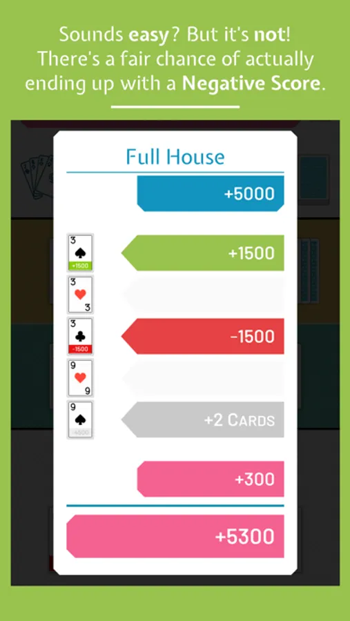 * Every hand that you make also delivers you a score. But some hands can bring your overall score down. So choose carefully which hand to make!