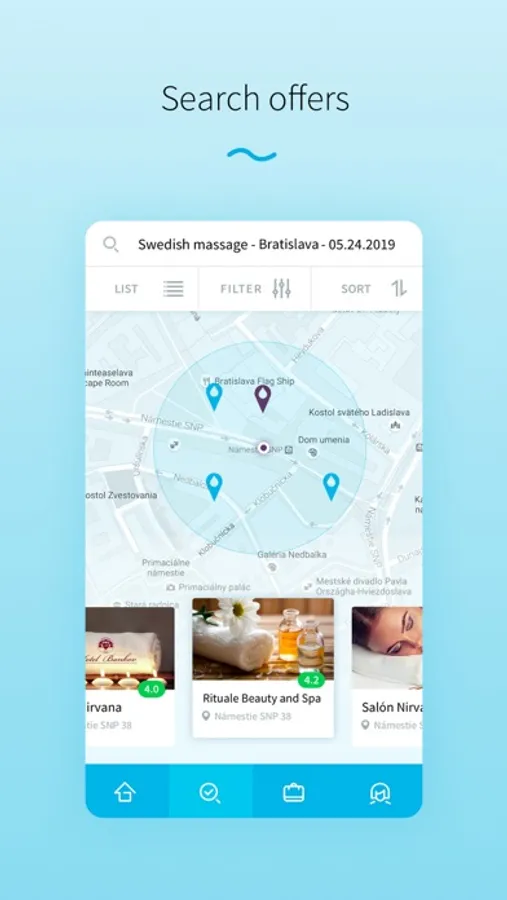 Our application will enable you to search, compare and book easily and quickly hotels and treatments directly from your smartphone or computer.