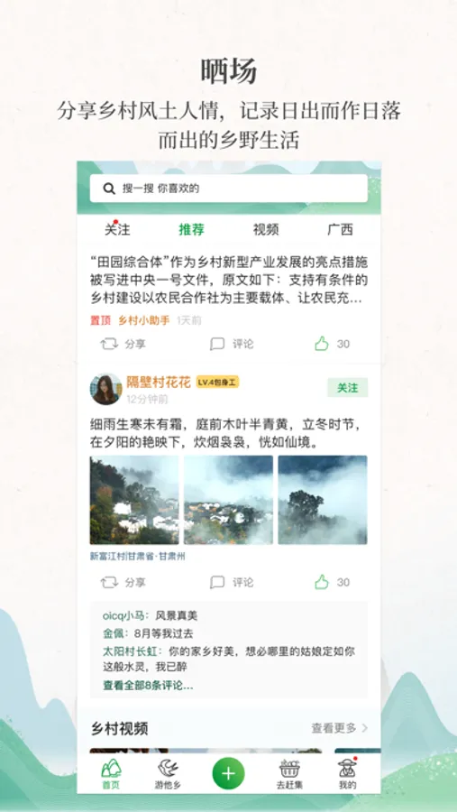 【游乡村】可以尽情浏览全国各个乡村的风光,历史沿革,美食特产等。