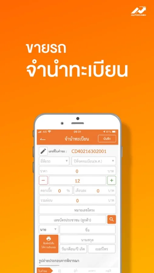 แอพ พรประเสริฐออโต้แคช สำหรับผู้ที่เป็นตัวแทนจำหน่ายรถและจำนำทะเบียน
