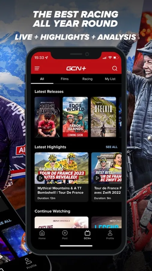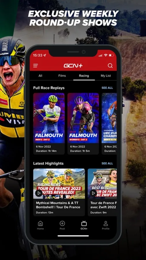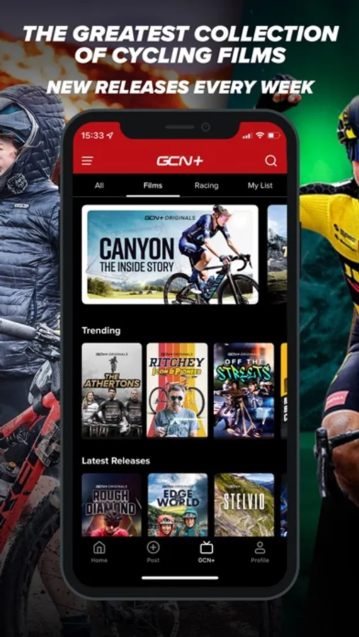 GCN+ is everything cycling, all in one place: thrilling races + inspiring films + a full-gas experience.