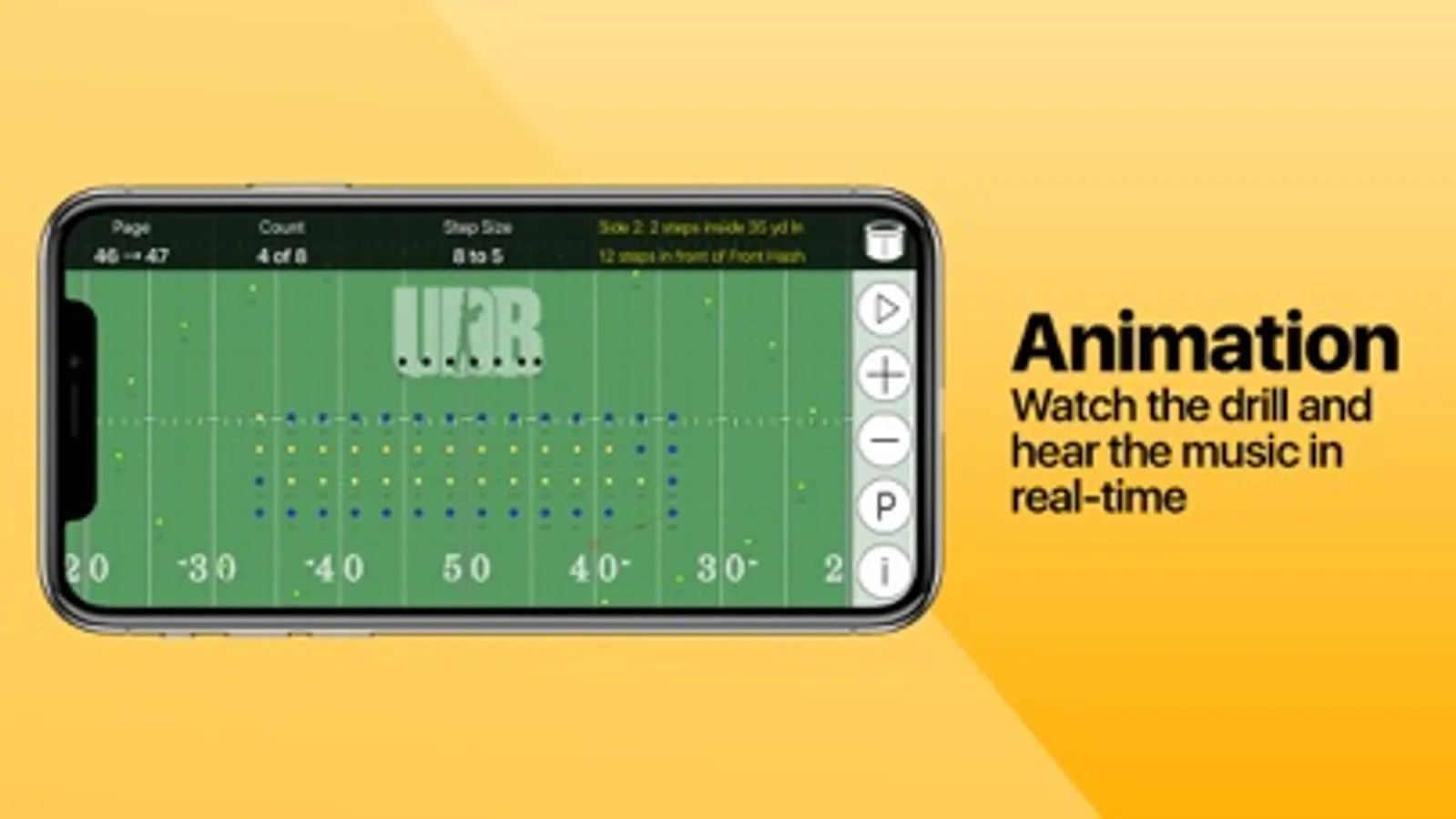 - Watch the drill animation while listening to the music from any perspective (performer or director).