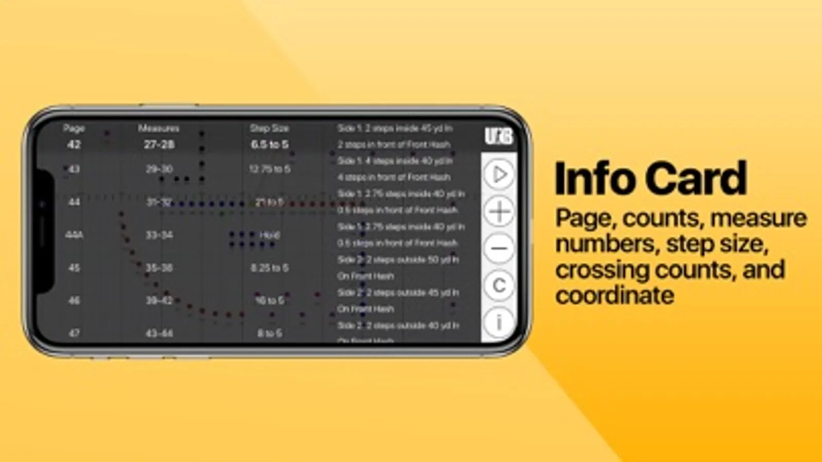 - Easily find your midway points and yard line crossing counts
