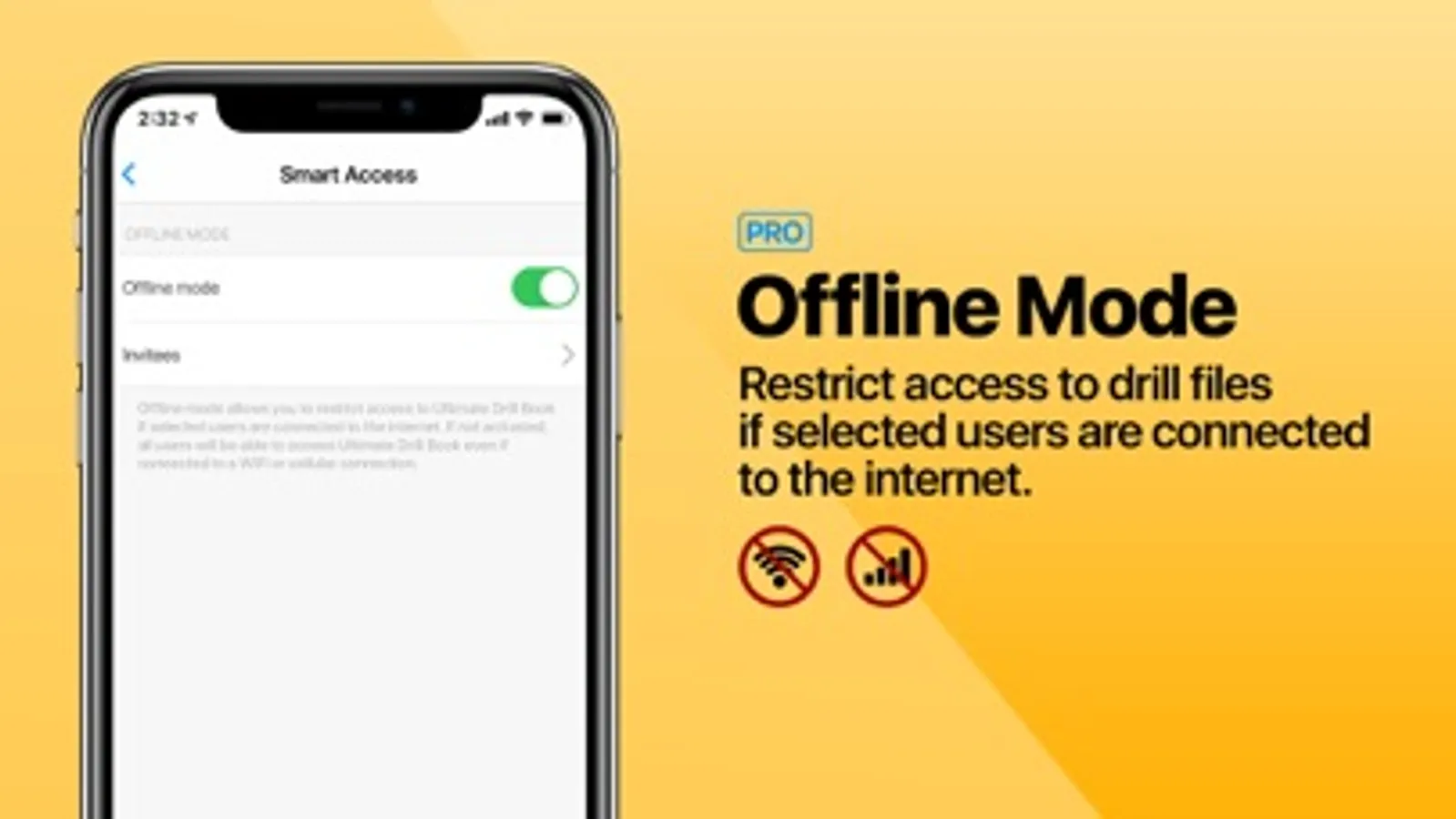 Offline mode allows a director to restrict access to Ultimate Drill Book if selected users are connected to the internet. If not activated, all users will be able to access Ultimate Drill Book even if connected to a WiFi or cellular connection.