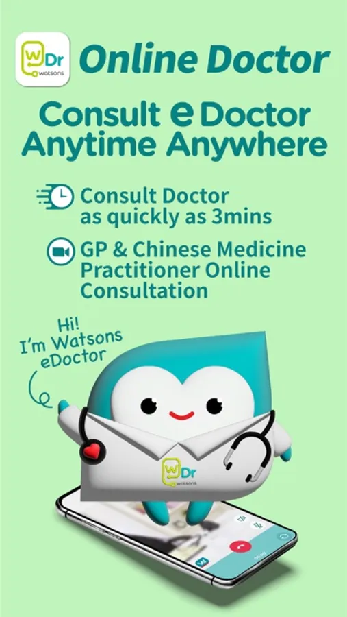 Watsons is raising the bar in health and wellness with the all-new Watsons eDr Online Doctor App! We aim to provide you an effortless one-stop experience in managing your health. With our 1-on-1 LIVE video consultation service, you can speak with a licensed General Practitioner and Chinese Medicine Practitioner and get the best possible care with medication – wherever you go, whenever you need.