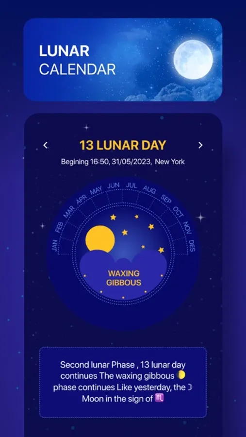 LUNAR CALENDAR: Embrace the power of the Moon's phases with our lunar calendar. Harmonize your actions and decisions with the cosmic guidance provided by each lunar cycle.
