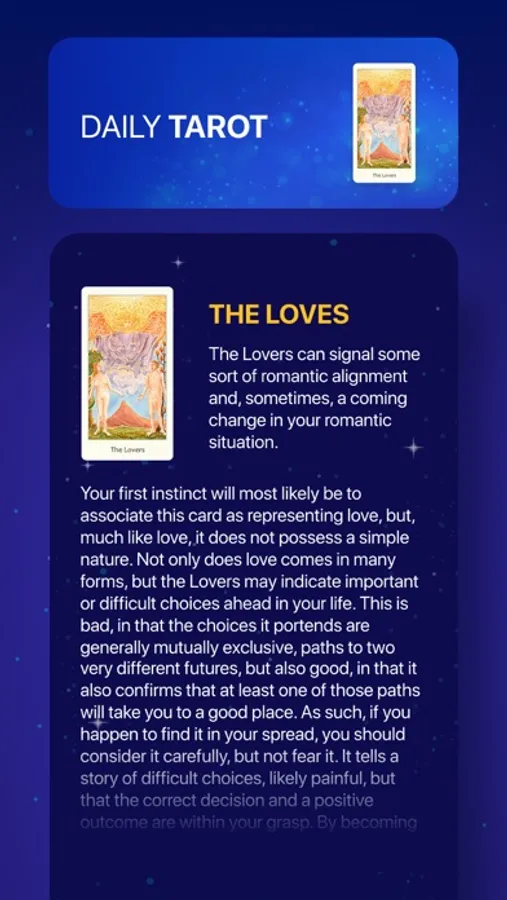 TAROT: Tap into the ancient art of divination with our powerful Tarot cards reading. Our deck, steeped in centuries of tradition, serves as a guide, providing answers to your most burning questions about health, love, relationships, career, finances, and much more. With each card carrying distinct meanings depending on its position, you can expect a unique, personalized, and detailed perspective on your current situation. Unveil the cosmic wisdom that lies within each card with a simple pick and click!