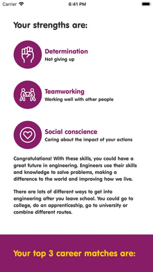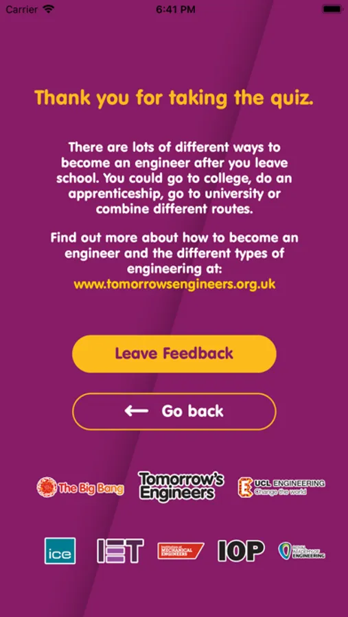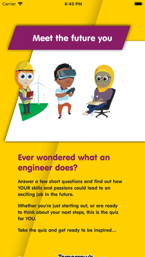 Meet the future is a quiz that helps young people explore their skills and interests to identity different areas of engineering they might enjoy working in in the future. The quiz was developed by EngineeringUK in partnership with UCL Engineering, with the support of the Tomorrow’s Engineers Careers Working Group (CWG). The CWG includes representatives from the Institution of Civil Engineers, The Institution of Engineering and Technology, the Institution of Mechanical Engineers, the institute of Physics and the Royal Academy of Engineering.