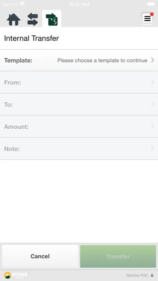 • Transfer money between accounts