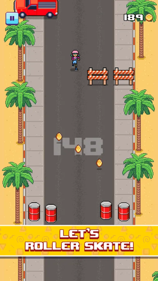 Roller-skate as far as you can! Jump over the river and get to the new world!